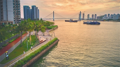 2020年底海口湾畅通工程“三道”贯通后,家住长堤路的海口市民刘畅每天晚上都会去跑步道上跑一圈,周末也会带女儿到对岸的潟湖边玩耍。看到女儿的笑脸,他真切地意识到,改造升级后的海口湾给他的生活带来了实实在在的变化。