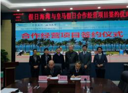 12月30日上午,假日海滩公司与皇马假日集团举行“假日海滩游客中心主体楼合作经营项目签约仪式”,皇马假日集团董事长兼总裁黄俊忠、集团董事长助理兼皇马假日大学校长王雄,海旅控股集团党委副书记、总经理朱俊、副总经郑瑞平、假日海滩公司董事长李胜卫、总经理金艳及管理经营团队出席仪式。