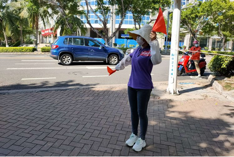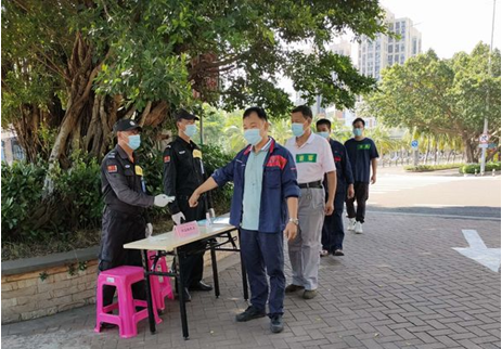 通信联络组上报美兰区防疫防控指挥部、海旅集团,并在路口等待引导疫情防控指挥部救护人员抵达警务室。